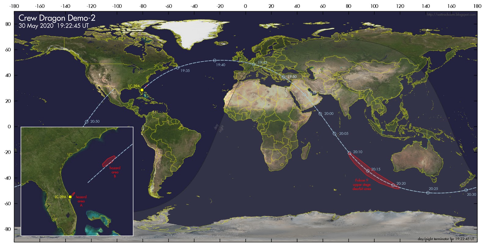 Spacex Dragon Trajectory Map SpaceX crew launch comes with new weather constraints for : SpaceX’s Crew Dragon capsule just arrived at NASA’s Kennedy Space Center ahead of its first crewed test flight dubbed Demo-2 on May 27. If everything goes according to plan, the spacecraft will . The SpaceX Dragon vehicle left the International Space Station after being docked there for the past week, and re-entered Earth’s atmosphere. It had a heat-shield to protect it from the high .